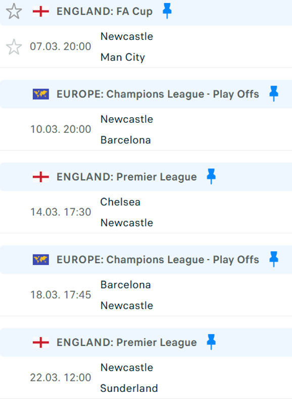 March isn't going to get any easier. In March, we've got Man City, Barcelona that's twice, Chelsea, and then we end with a game that we'll talk about when it comes to it.